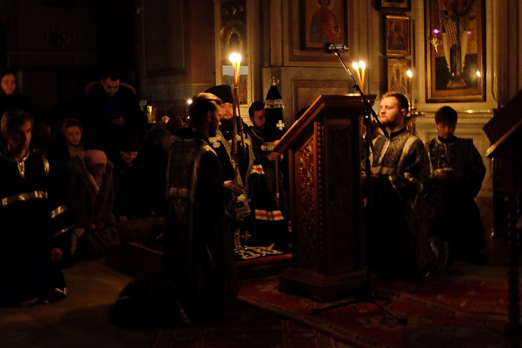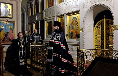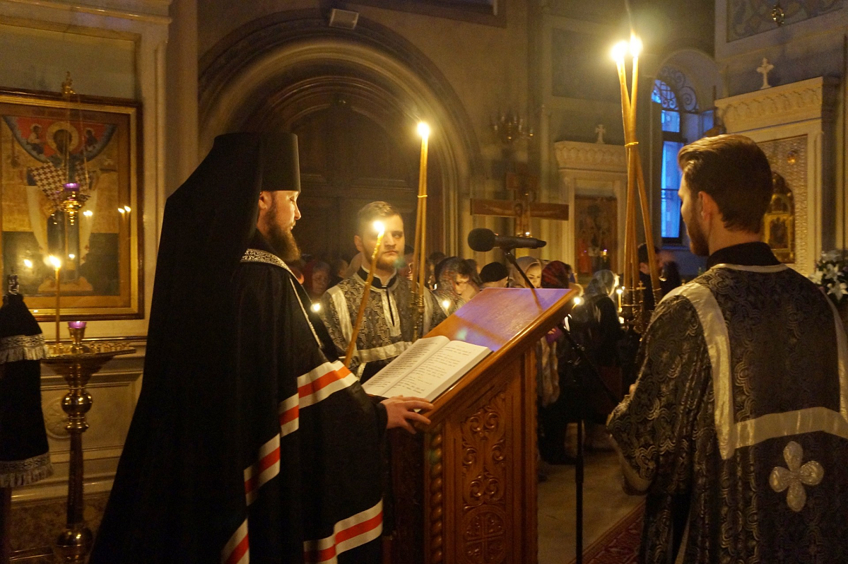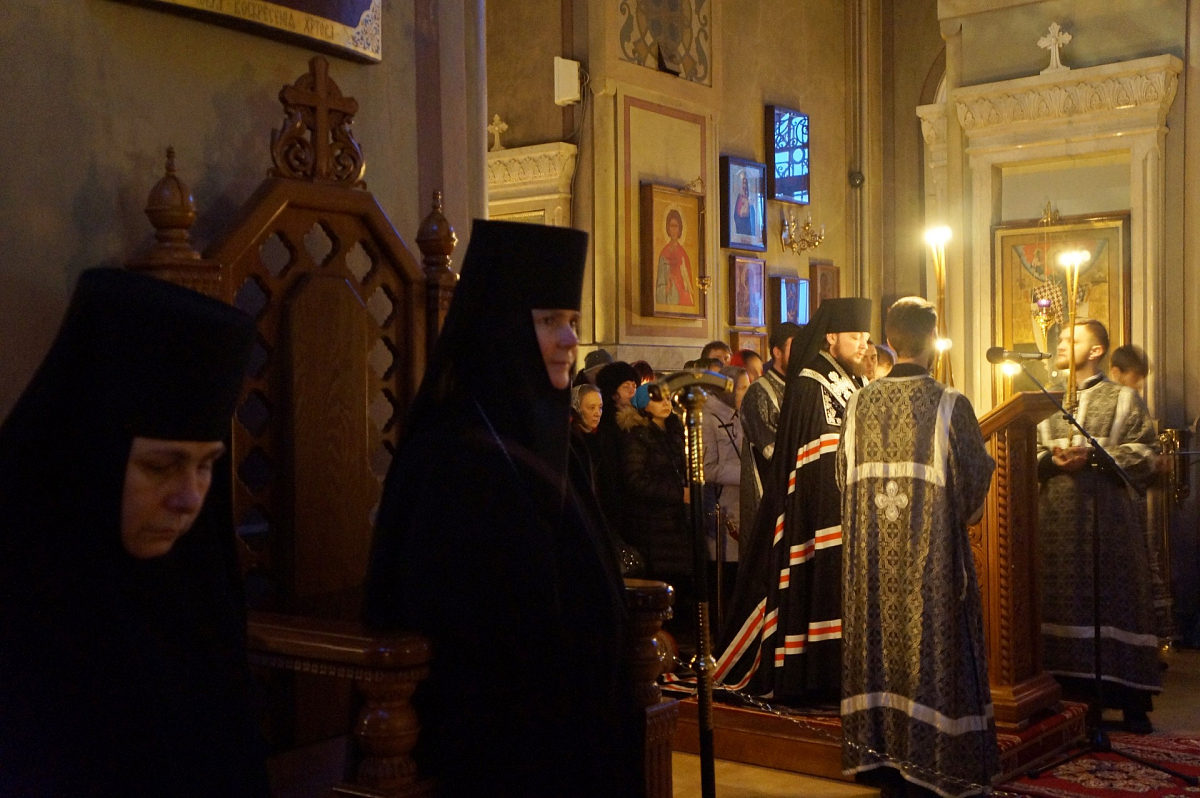 Его Преосвященство совершил великое повечерие с чтением Великого покаянного канона прп. Андрея Критского. В богослужении участвовали клирики обители.