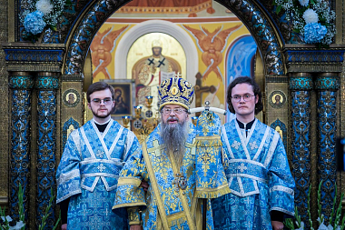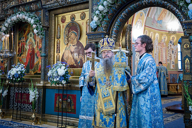 Под сводами недавно расписанного собора в честь Рождества Пресвятой Богородицы звучали праздничные песнопения, наполненные светлой радостью всего мира о рождении Преблагословенной Владычицы, Которой была отведена важная роль в осуществлении Божественного плана спасения человечества и тайны Боговоплощения. Пресвятая Дева Мария Своей чистотой и добродетелью превзошла не только всех людей, но и Ангелов, явившись живым храмом Божиим и, как пелось на богослужении, Небесной дверью, вводящей Христа во вселенную, во спасение душ наших.