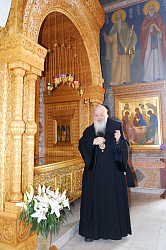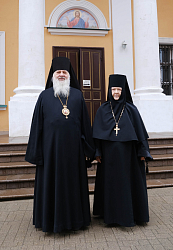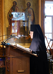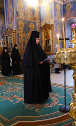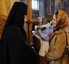 Затем владыка поздравил матушку игумению с днем монашеского пострига, который состоялся в 1984 году в Рижском Свято-Троице-Сергиевом женском монастыре.
