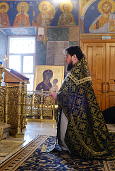 Его Преосвященству сослужило духовенство обители.