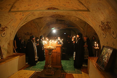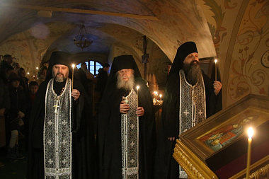 В храме во имя преподобного Иосифа Волоцкого владыка в сослужении священноиноков обители совершил повечерие с чтением Великого канона преподобного Андрея Критского.