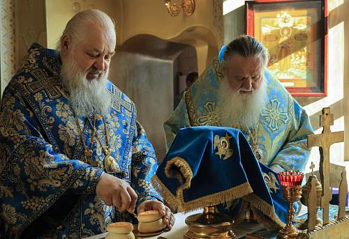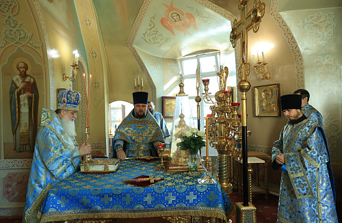 Его Преосвященству сослужили наместник Высоцкого ставропигиального мужского монастыря епископ Серпуховской Роман, братия обители в священном сане.