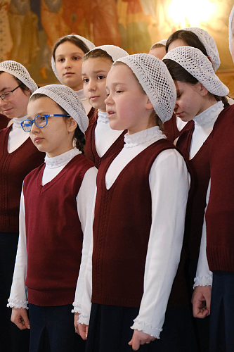 В обители его встретила настоятельница монастыря игумения Олимпиада (Баранова) с сестрами и воспитанницами детского пансиона. Также на встрече присутствовала Р.Г. Тихомирова председатель Совета депутатов Сергиево-Посадского городского округа.