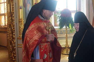 В поздравительном слове старший священник монастыря иеромонах Адриан (Чаликов), обратив внимание на значительное увеличение прихожан в последние годы, отметил, что боголюбцев, несомненно, привлекает к монастырю не внешняя красота или слава, но духовные дары, распускающиеся в сердцах сестер подобно цветам. Но, хотя приходящие в сад любуются цветами, а не садовником, тем не менее во многом именно от его усердия и искусства зависит красота и плодородие сада. Так и при формировании духа монашеского сестричества особую роль играют труды его духовной матери. И хотя и справедливо во всяком духовном деле успех относить к Божественному дарованию, тем не менее без отклика самого человека не сможет действовать и Божественная благодать.