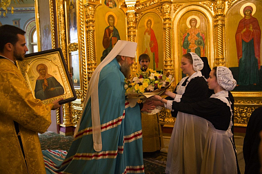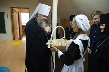 Митрополит Меркурий посетил учебный корпус гимназии, где осмотрел учебные классы и познакомился с учащимися. В честь юбилея ученики гимназии организовали праздничный концерт.