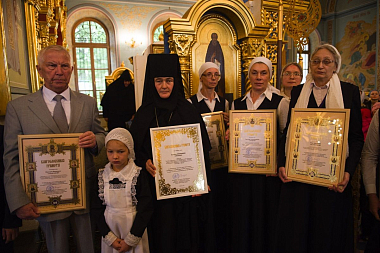 За труды на ниве православного образования и духовно-нравственного просвещения и в связи с 20-летием Православной гимназии в Троице-Лыкове города Москвы председатель Синодального отдела наградил Благословенной грамотой настоятельницу Покровского ставропигиального женского монастыря игумению Феофанию (Мискину), а также учителей, трудящихся в гимназии.