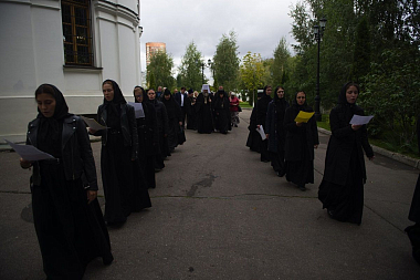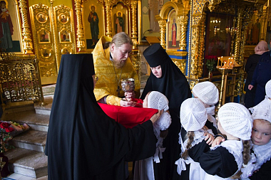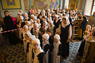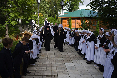 За Божественной литургией молились директор гимназии настоятельница Покровского ставропигиального женского монастыря игумения Феофания (Мискина), преподаватели, учащиеся и их родители.