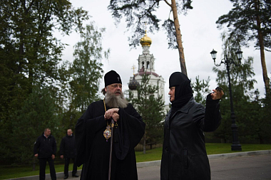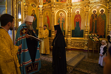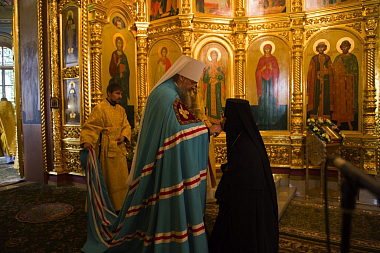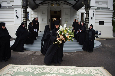 По окончании богослужения игумения Феофания (Мискина) приветствовала митрополита Ростовского и Новочеркасского Меркурия и поблагодарила за совершенное богослужение и совместную молитву: