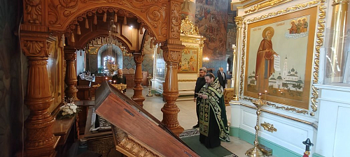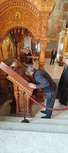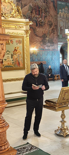 В сопровождении наместника архимандрита Сергия (Воронкова) Константин Валерьевич проследовал в Успенский собор обители, где помолился у мощей преподобного Иосифа Волоцкого.