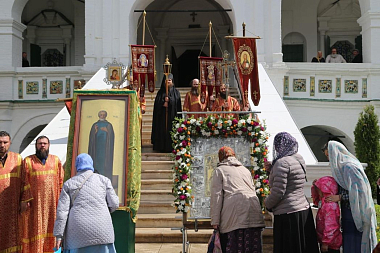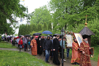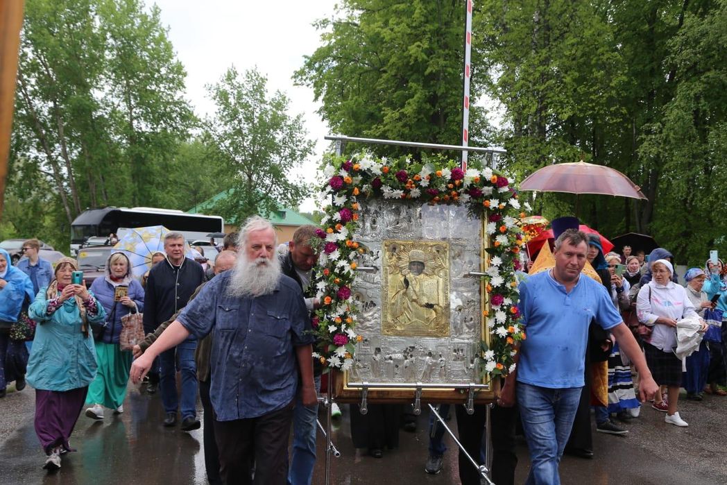Крестный ход начался после Божественной литургии в Введенском храме. Икону святителя Николая насельники монастыря во главе с наместником архимандритом Сергием (Воронковым) встречали с образом преподобного Иосифа Волоцкого у Святых врат обители. Архимандрит Сергий с братией и настоятель Введенского храма в Спирове протоиерей Константин совершили молебное пение с Акафистом Николаю Чудотворцу.