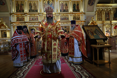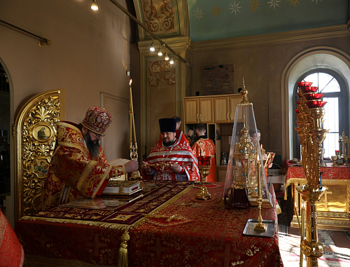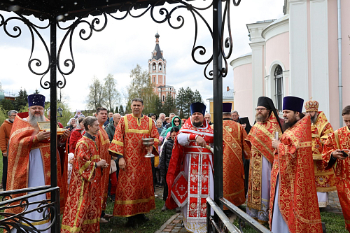 За Литургией в Троицком храме Его Высокопреосвященству сослужили клирики Смоленской епархии и клирики Троице-Одигитриевского монастыря.