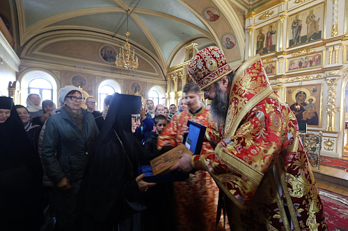 По окончании богослужения митрополит Исидор передал в дар святой обители икону Смоленской Божией Матери «Одигитрия».