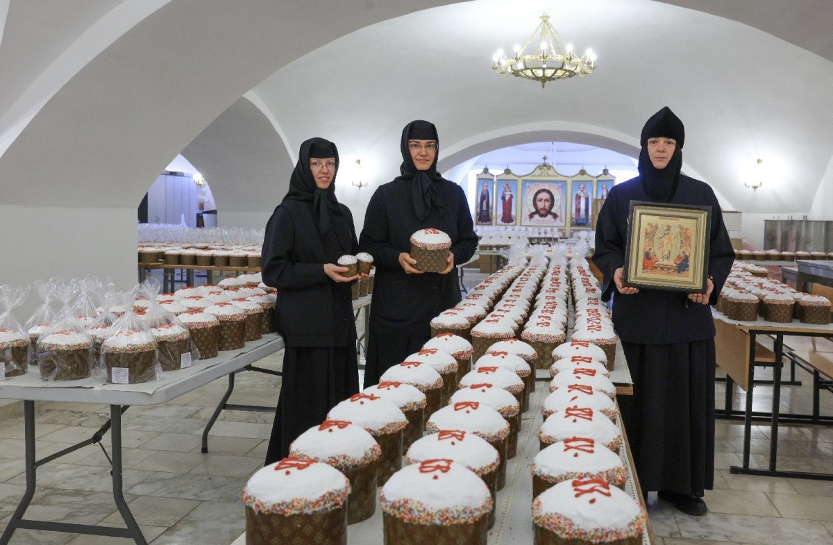 К празднику Светлого Христова Воскресения по благословению настоятельницы Кресто-Воздвиженского Иерусалимского ставропигиального женского монастыря игумении Екатерины (Чайниковой) сестры обители испекли и отправили на линию боевого соприкосновения 8000 куличей.
