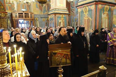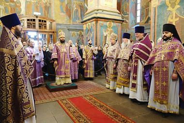 За богослужением молились настоятельница Богородице-Рождественского ставропигиального женского монастыря игумения Викторина (Перминова) с сестрами.