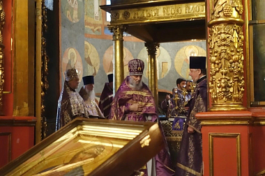 Его Высокопреосвященству сослужили секретарь Патриарха Московского и всея Руси по г. Москве, благочинный Центрального округа протопресвитер Владимир Диваков и московское духовенство.
