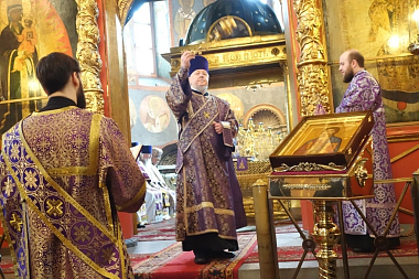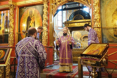 Уставные богослужения, сочетающиеся с празднованием чтимой иконе, совершил викарий Святейшего Патриарха Московского и всея Руси архиепископ Егорьевский Матфей.