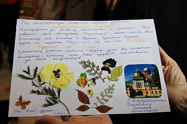 Насельницы обители и прихожане поприветствовали гостей, а дети раздали подарки.