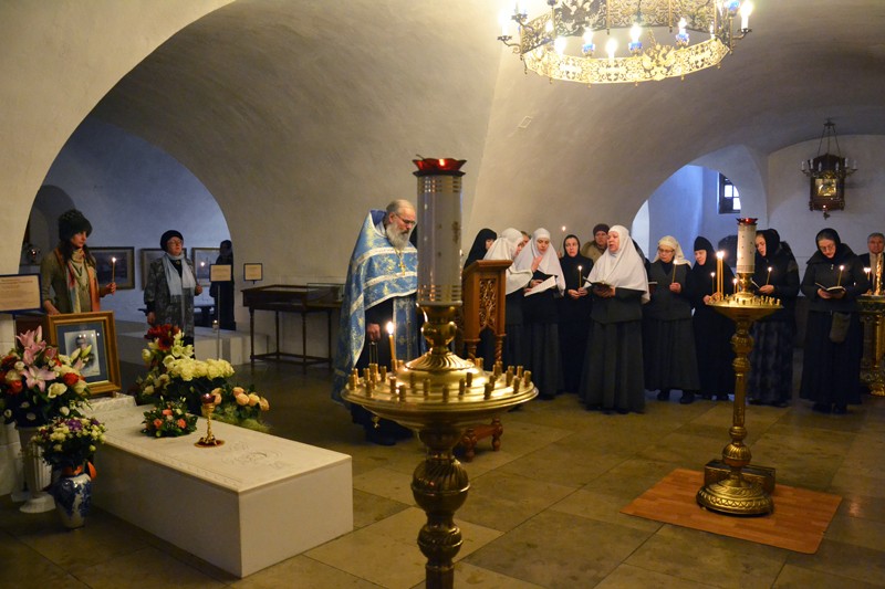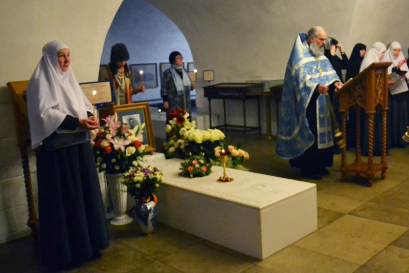 Клирик обители милосердия протоиерей Александр Дубинин совершил панихиду у гробницы Сергея Александровича в храме Преподобного Романа Сладкопевца усыпальницы бояр Романовых.