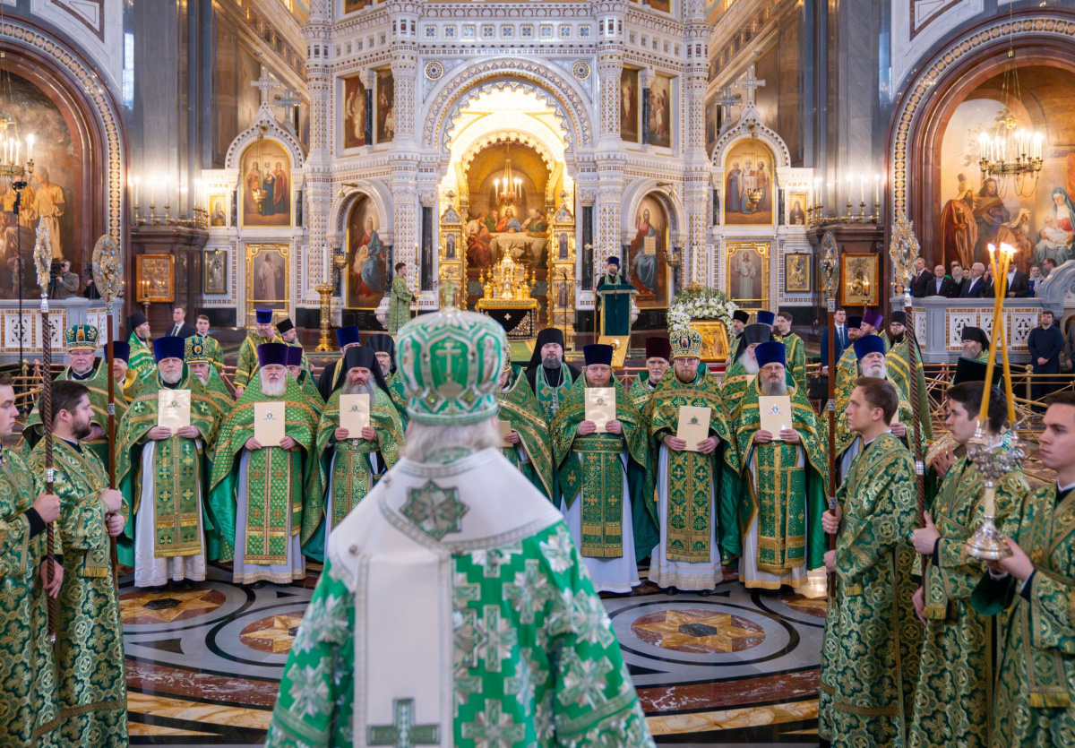Святейший Патриарх Кирилл совершил славление празднику, после чего обратился к верующим с Первосвятительским словом.