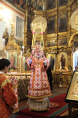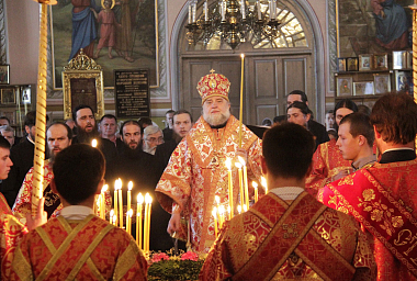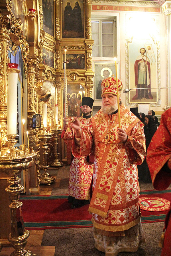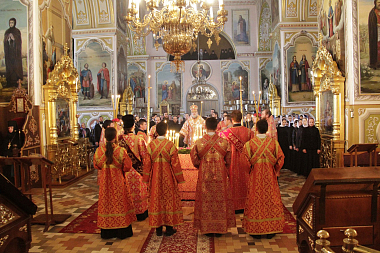 Накануне праздника Его Высокопреосвященство возглавил всенощное бдение святому вмч. Георгию в сослужении монастырского и лаврского духовенства.