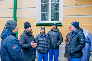 Добрая традиция продолжается. Накануне праздника в честь Казанской иконы Божией Матери, космонавты и астронавты вместе с иеромонахом Пафнутием (Фокиным), настоятелем храма Преображения Господня в Звездном городке, молились у мощей преподобных Сергия и Никона, приложились к святыням обители и совершили экскурсию по монастырю.