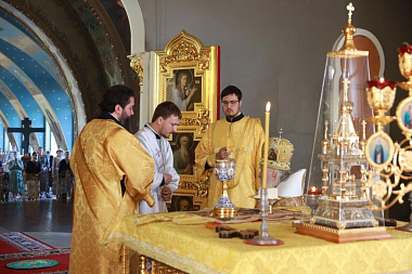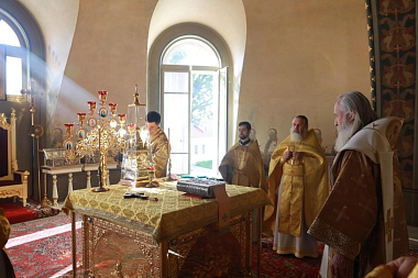 Его Высокопреосвященству сослужило монастырское духовенство.