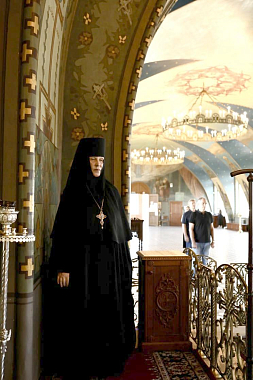 В храме молились настоятельница Богородице-Рождественского ставропигиального монастыря игумения Викторина (Перминова), заместитель председателя Синодального отдела по монастырям и монашеству настоятельница Зачатьевского ставропигиального монастыря игумения Иулиания (Каледа), сестры и прихожане обители.