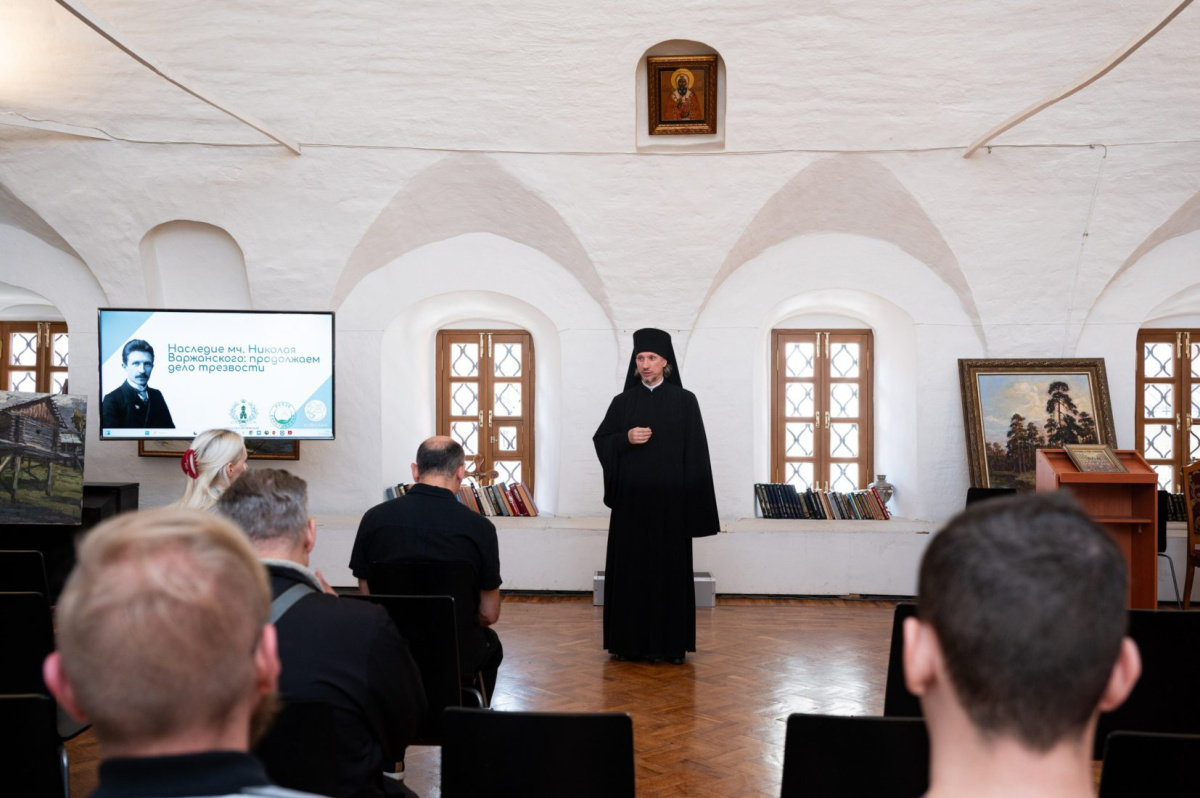 После молебна мученику Николаю Варжанскому о страждущих недугом винопития и наркомании в актовом зале обители собрались подопечные центра «Койнония», приглашенные эксперты и гости. С приветственным словом к собравшимся обратился насельник Высоко-Петровского монастыря, куратор проекта «Консультационный кабинет в честь мученика Николая Варжанского» инок Игнатий (Ибрагимов), который передал благословение от наместника монастыря архимандрита Иоанна (Железова) и пожелания помощи Божией в деле социального служения.