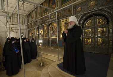 Чтение Великого покаянного канона прп. Андрея Критского Высокопреосвященнейшим владыкой является многолетней традицией для Зачатьевской обители и неотъемлемой частью богослужений первой седмицы Великого поста.