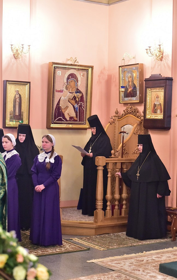 За праздничной Литургией молились настоятельница Покровского ставропигиального женского монастыря игумения Феофания (Мискина), настоятельница Патриаршего подворья Успенского Пюхтицкого ставропигиального женского монастыря в Москве игумения Филарета (Смирнова), сестры Покровской обители, воспитанницы детского приюта при Покровском монастыре, гости, прихожане обители и многочисленные паломники.