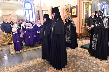 В свою очередь, митрополит Арсений обратился к собравшимся с архипастырским словом, в котором поздравил с престольным праздником обители епископа Иоанна, сослуживших клириков, игумению Феофанию с сестрами обители, гостей и прихожан.