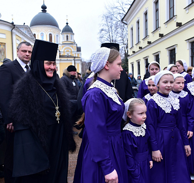 По окончании богослужения игумения Феофания приветствовала митрополита Арсения и епископа Иоанна, поблагодарив их за приезд на праздник, совершенное богослужение и пастырское попечение обители. В своем слове матушка также выразила благодарность Святейшему Патриарху Московскому и всея Руси Кириллу за оказанное доверие и Первосвятительскую заботу о Покровском монастыре.