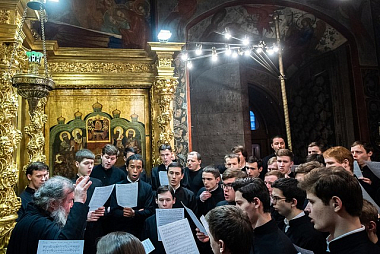 Церковные песнопения исполнил смешанный хор лавры под управлением архимандрита Глеба (Кожевникова) и братский хор под управлением чтеца Сергия Сухарева.