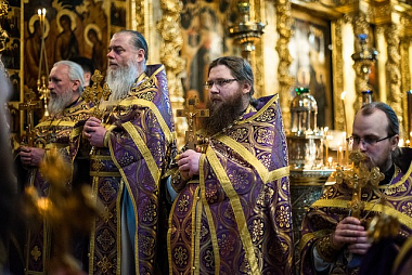Накануне митрополит Даниил совместно с наместником обители преподобного Сергия епископом Сергиево-Посадским Парамоном в сослужении священноиноков лавры совершил всенощное бдение в Успенском соборе монастыря.