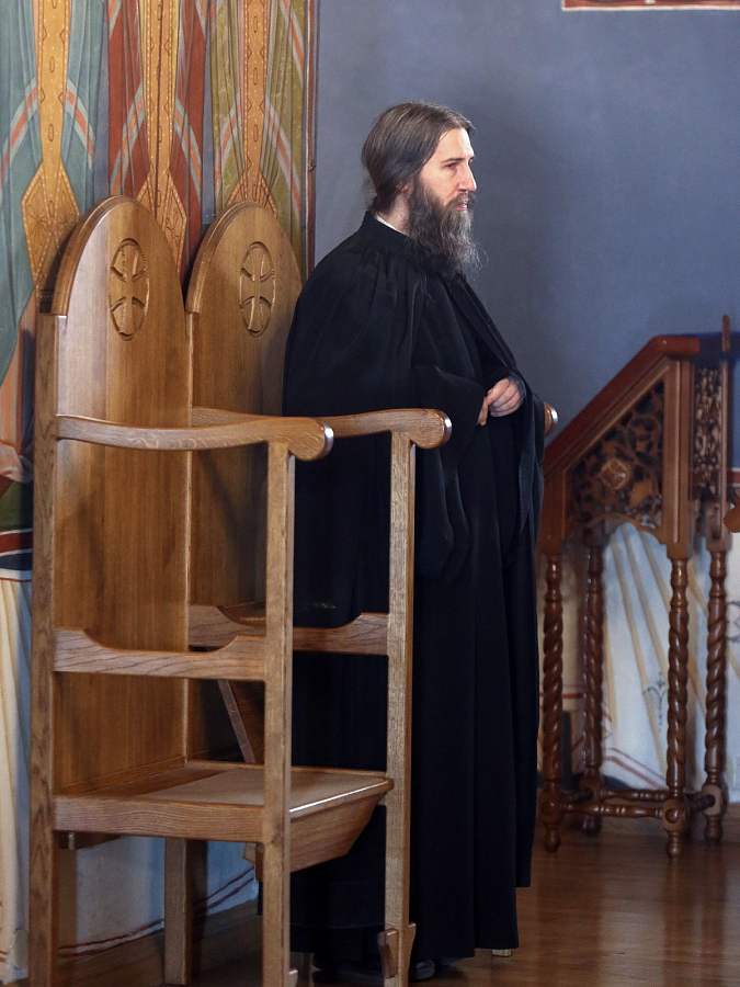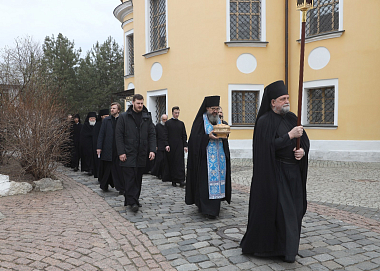 Его Высокопреосвященству сослужили братия монастыря в священном сане.