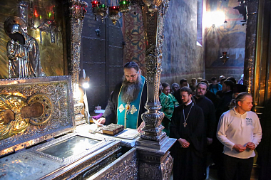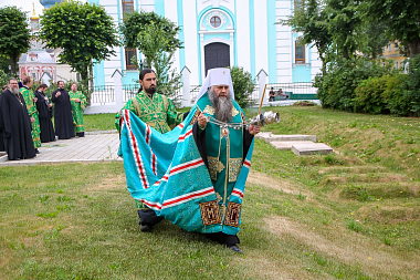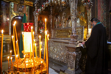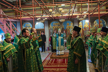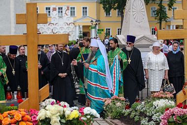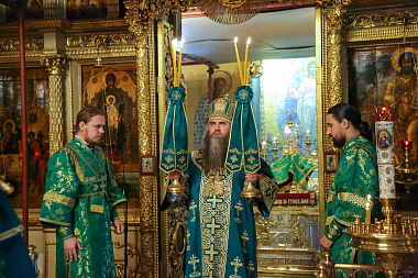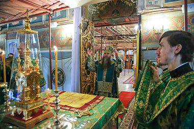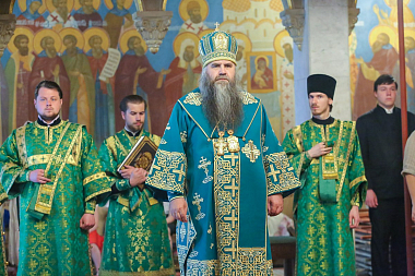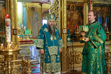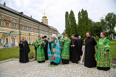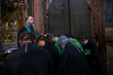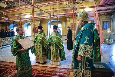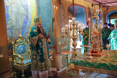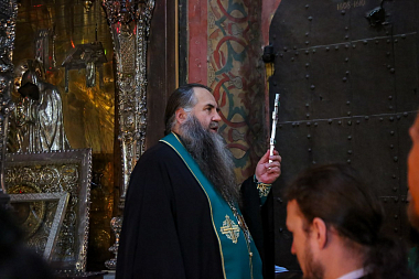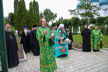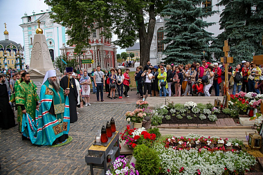 Затем в Троицком соборе монастыря митрополит Георгий возглавил молебен перед ракой с мощами преподобного Сергия Радонежского.