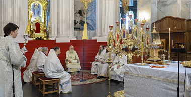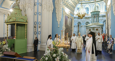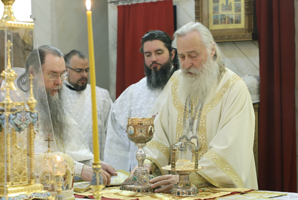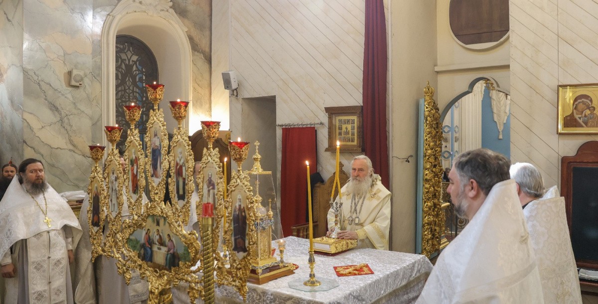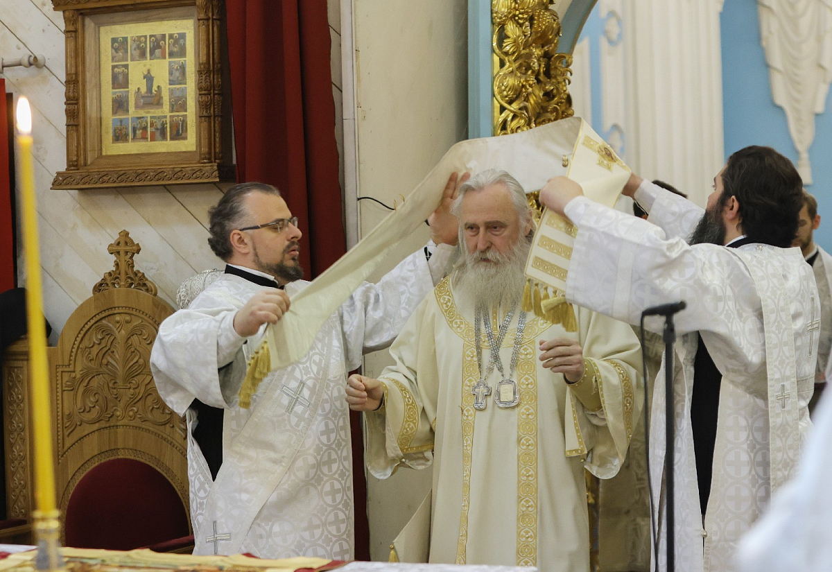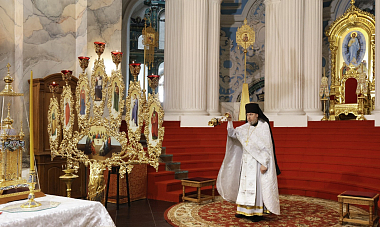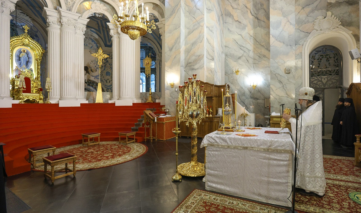 Его Высокопреосвященству сослужили наместник Ново-Иерусалимского монастыря архимандрит Феофилакт (Безукладников), братия обители в священном сане.