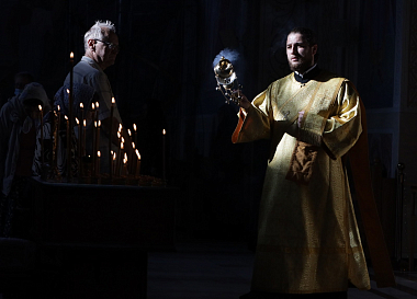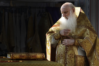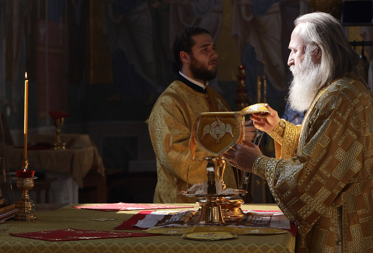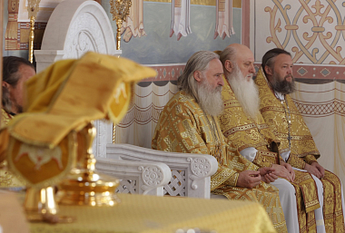 Его Высокопреосвященству сослужило духовенство обители.
