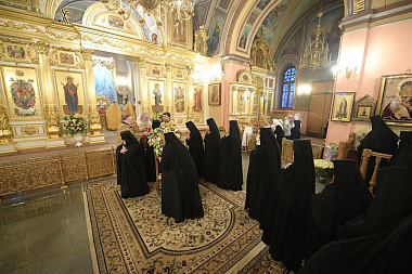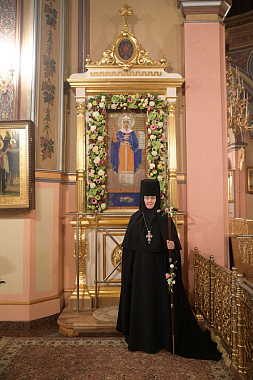 Перед полунощницей насельницы Покровского монастыря чинно провели матушку игумению в храм под пение тропаря блаженной царице Феофании.