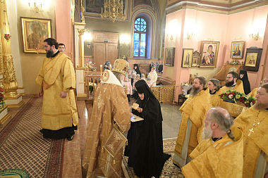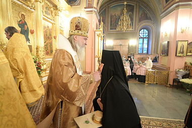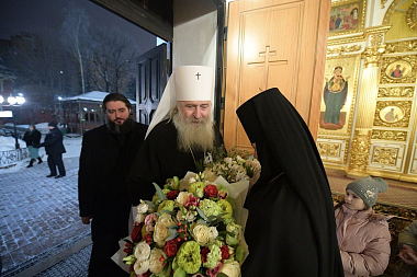 Митрополит Феогност огласил поздравление Святейшего Патриарха Московского и всея Руси Кирилла в адрес игумении Феофании с днем тезоименитства.