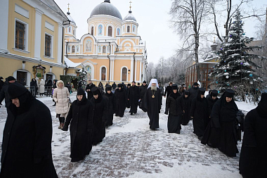 За Литургией молились настоятельница монастыря игумения Феофания (Мискина) с сестрами и воспитанницами монастырского приюта, паломники и прихожане обители.