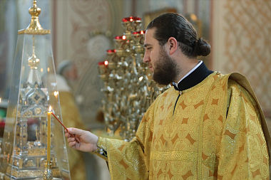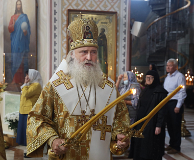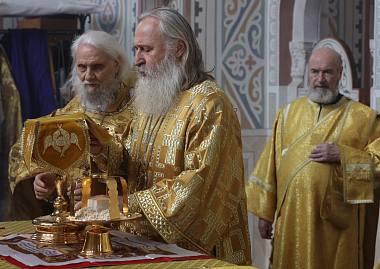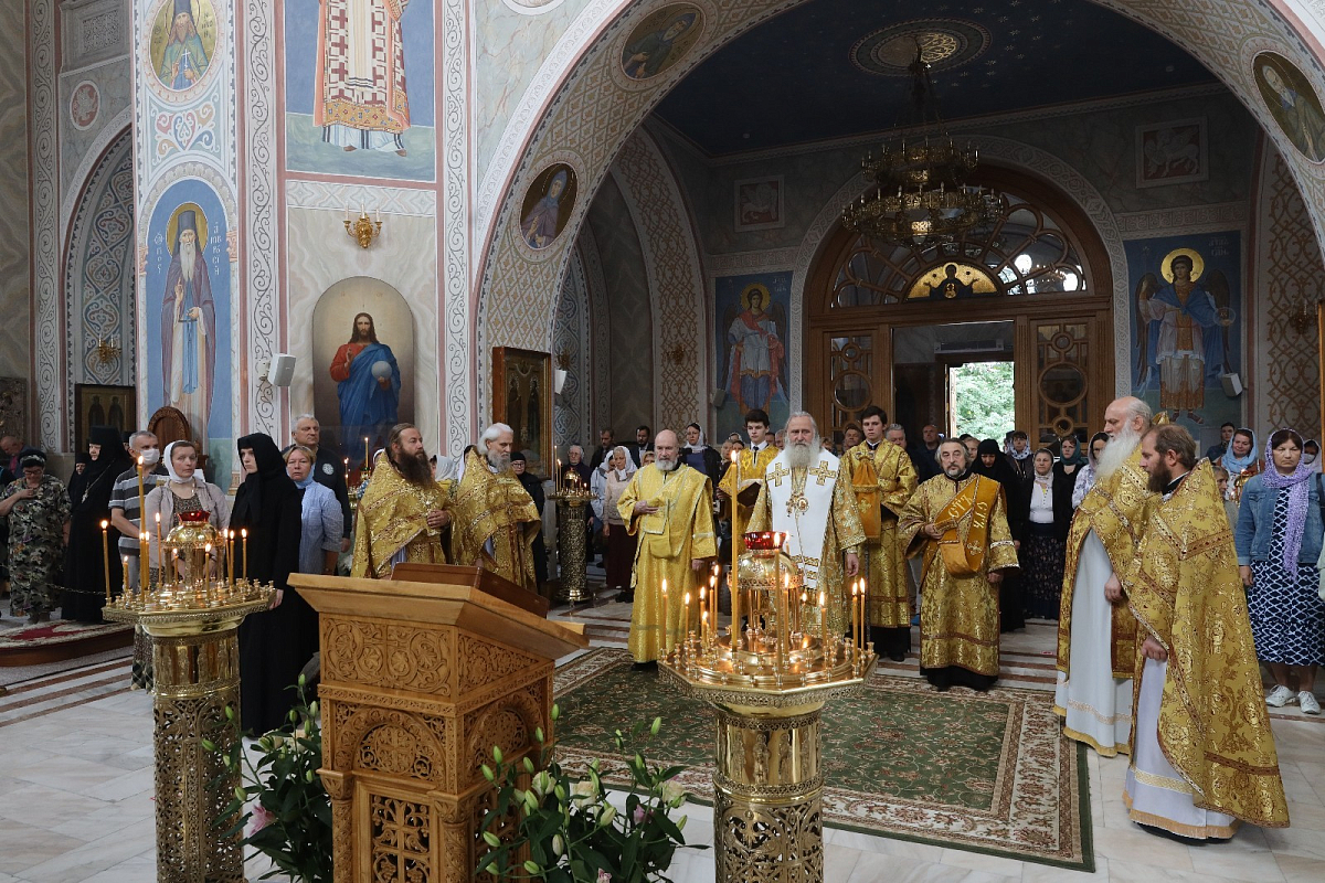 Его Высокопреосвященству сослужили протопресвитер Владимир Диваков, секретарь Святейшего Патриарха Московского и всея Руси, и духовенство обители.