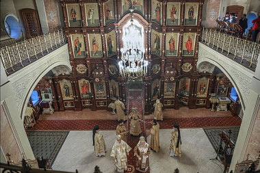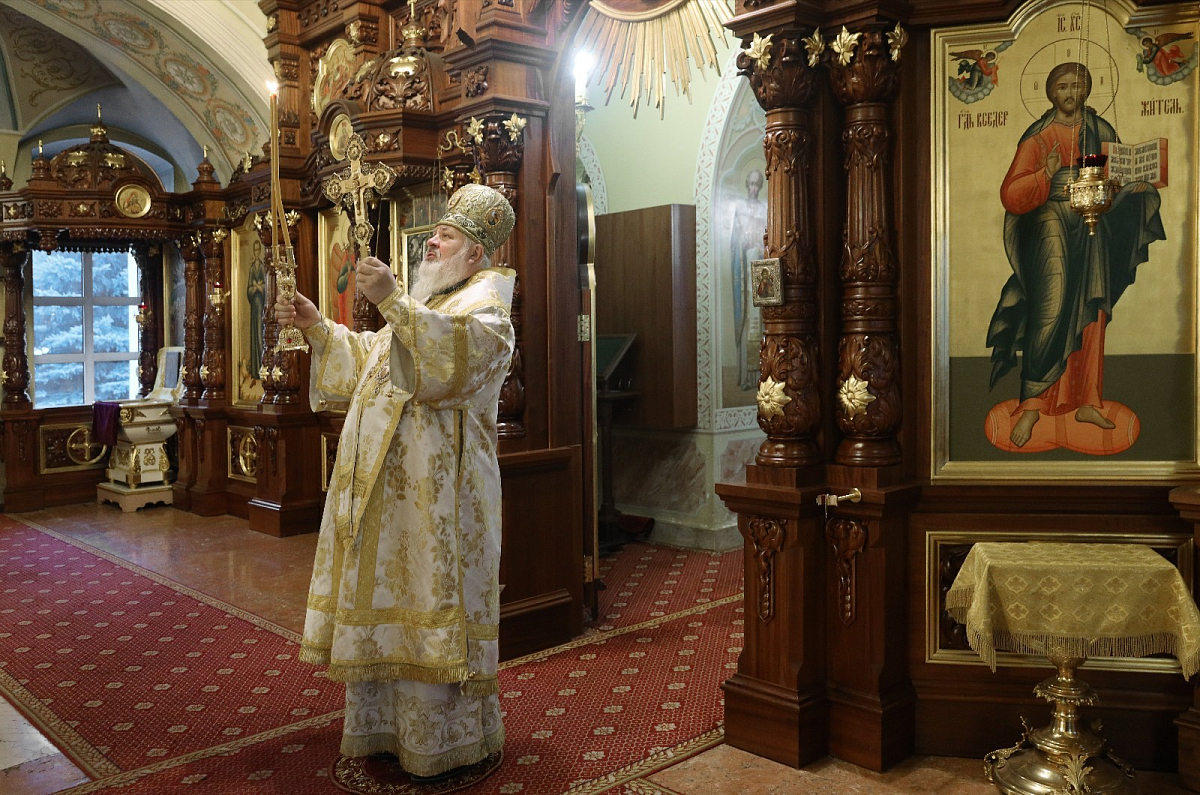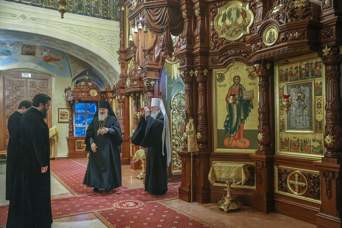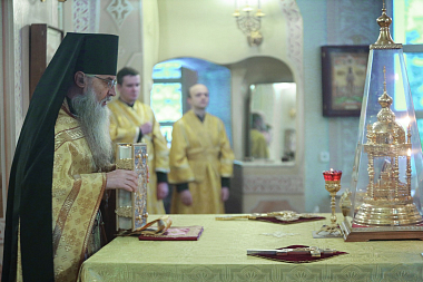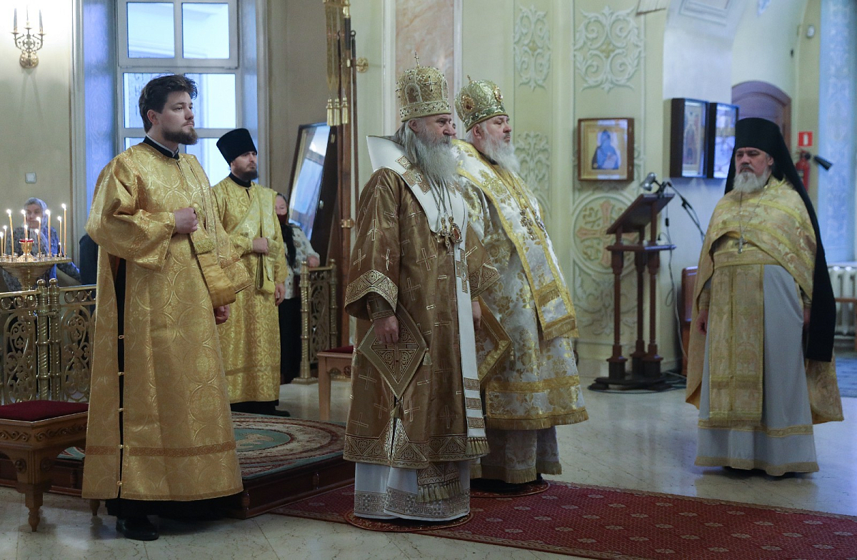 Его Высокопреосвященству сослужили наместник Екатерининского монастыря епископ Видновский Тихон, братия обители в священном сане.