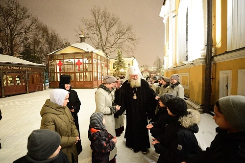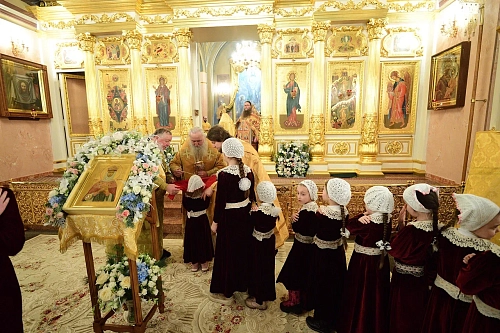 По прибытии в монастырь Высокопреосвященнейший владыка поклонился честным мощам блаженной Матроны Московской, почивающим в Покровском храме.