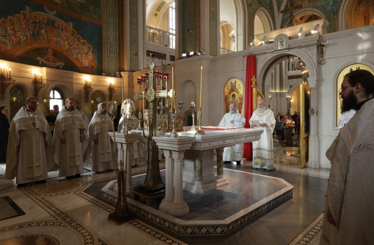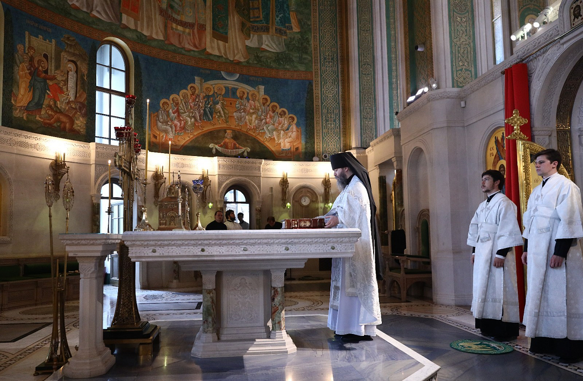 Богослужебные песнопения исполнил концертный хор Московских духовных академии и семинарии.