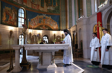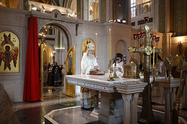 Его Высокопреосвященству сослужили наместник Сретенского монастыря иеромонах Иоанн (Лудищев) и братия обители в священном сане.