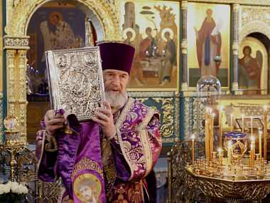 По окончании богослужения митрополит Феогност зачитал поздравление Святейшего Патриарха Московского и всея Руси Кирилла:
