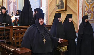 В завершение в трапезной монастыря сестринский хор и детский ансамбль обители «В солнечных лучах» преподнесли игумении Елисавете музыкальный подарок.