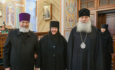 Его Высокопреосвященству сослужило духовенство монастыря и подворья.