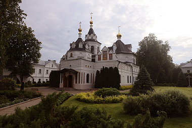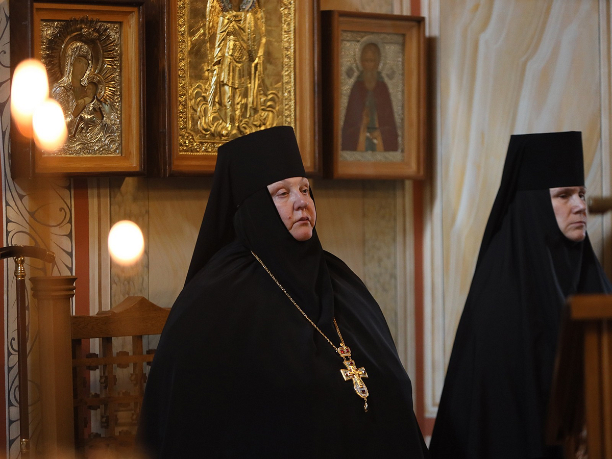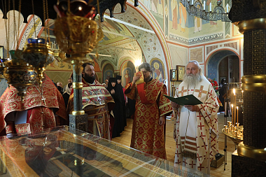 Богослужение состоялось во вновь открытом после завершения росписи стен и ремонтных работ Стефановском храме обители.